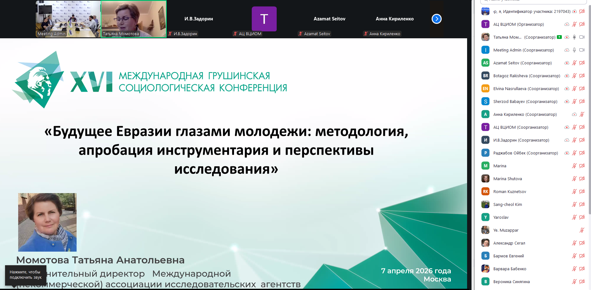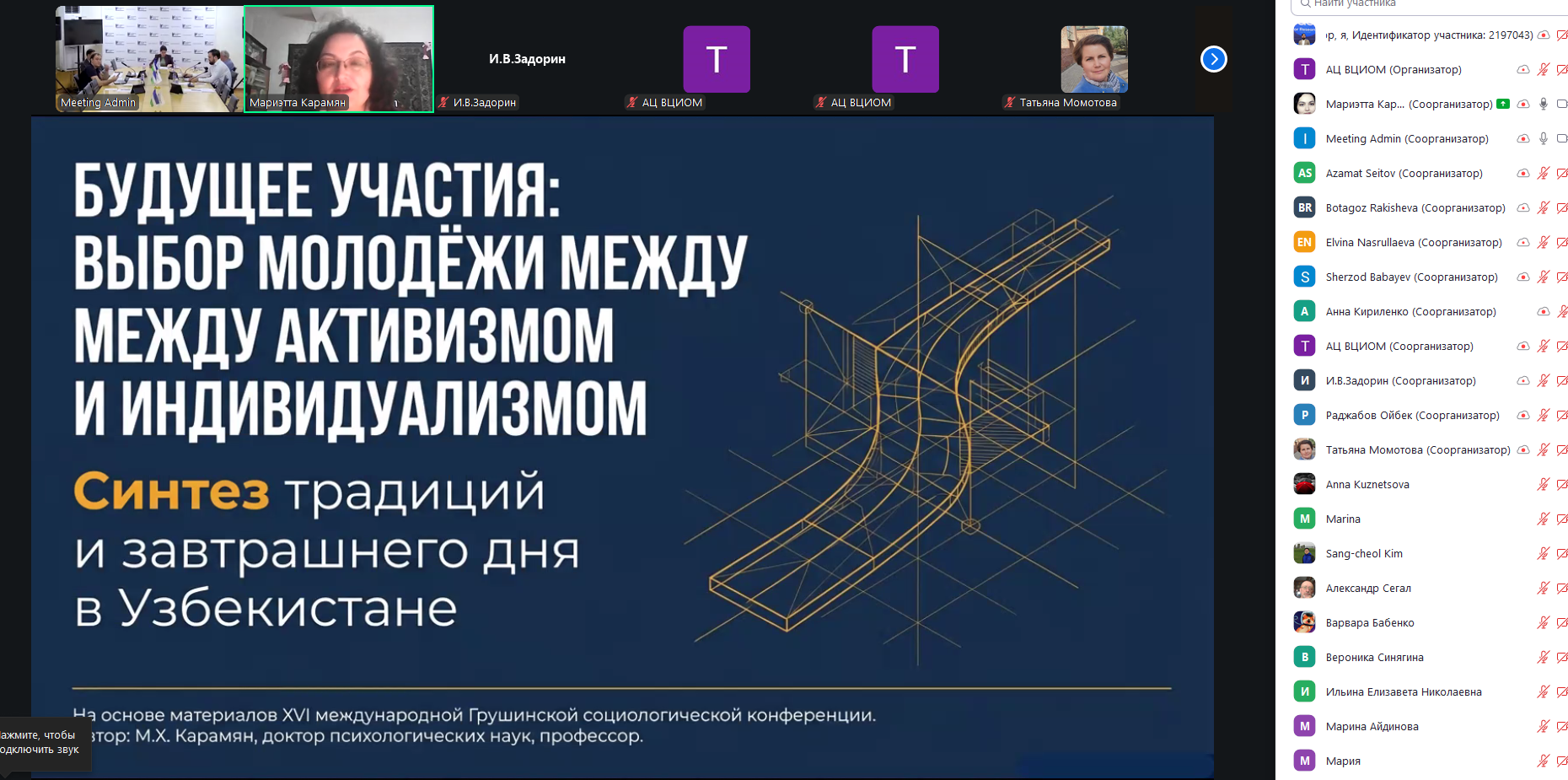 7 апреля 2026 года в Ташкенте в рамках XVI Международной Грушинской социологической конференции состоялся научно-практический семинар на тему «Будущее участия: выбор молодёжи между активизмом и индивидуализмом», организованный Республиканским центром изучения общественного мнения «Ижтимоий фикр».